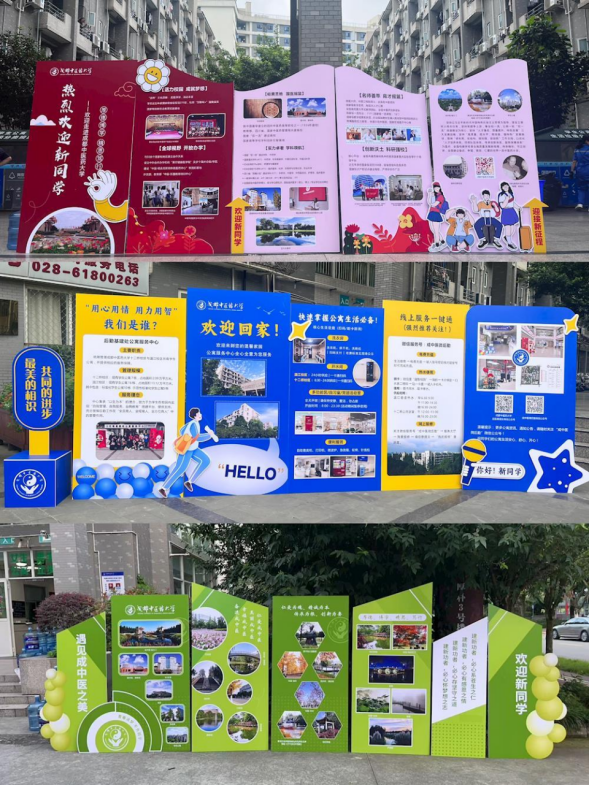 为帮助新生快速了解校园,成都中医药大学后勤基建处公寓服务中心准备了迎新主题展板,从“学校简介”“公寓服务流程指南”和“校园美景掠影”三个维度,向新生及家长生动展示了学校的办学底蕴、公寓服务流程以及校园环境,成为新生报到一道亮丽的风景线和实用的“信息站”。