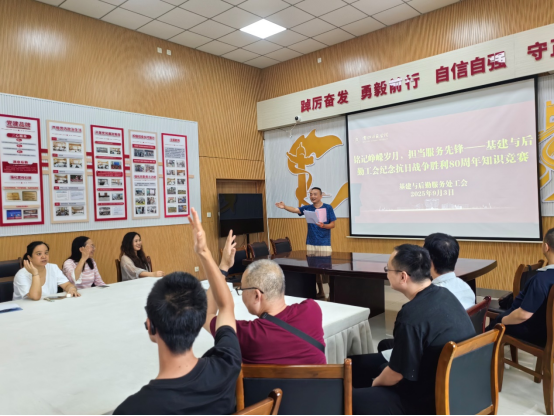 2025 年 9 月 3 日是中国人民抗日战争暨世界反法西斯战争胜利 80 周年纪念日。为铭记历史、缅怀先烈,传承弘扬伟大抗战精神,基建与后勤服务处工会策划举办主题鲜明、形式活泼的抗战胜利知识竞赛,以 “以赛促学” 形式,让基建后勤人在竞技与学习中重温峥嵘岁月、凝聚奋进力量。