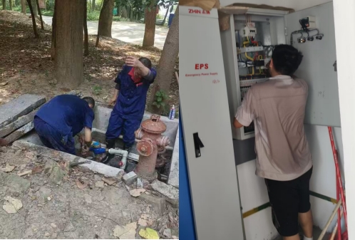 滚烫的设备房、闷热的地下井道,是他们的主战场。汗水浸透工装,脚步丈量校园——配电室电路巡检预试、水泵房设备维护、化粪池清掏疏通、供水水箱清洗消毒、空调设备维保检修、公寓家具及时修缮、电梯年检维护、水电计量抄录。从地面到楼顶,从明处到角落,应急抢修争分夺秒,他们以专业和毅力,筑牢校园能源“生命线”。