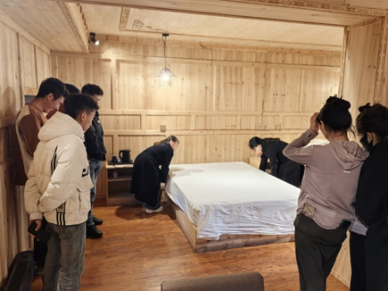 为助力亚弄村民宿产业提质增效,帮扶团队在“驿旅阳光民宿”开展专项技能培训。清水河饮食服务部厨师为民宿经营人员及前来学习的群众展示了京酱肉丝、小炒肉、辣子鸡、回锅肉的做法,邀请村民品尝并指导村民亲自上手操作,掌握烹饪技巧。接待服务部员工开展了客房服务技能培训,为经营民宿的群众讲解了客房整理技巧及注意事项,并指导藏家乐民宿经营者进行了实际操作。技能帮扶结束后,接待服务部主任刘庆代表电子科技大学后勤保障部向推进民宿居住及经营条件改善工作成效显著的三家民宿授予“‘藏家乐’民宿提档升级示范点”牌匾。
