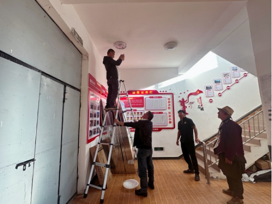 同时,清水河维修服务部两位员工在村委会开展安全用电知识宣传,向村民普及用电安全常识,并向村委会捐赠一架电工专用人字形折叠梯;随后,二人还主动为村委会及村内部分住户检修水电线路,更换故障照明灯、开关、水龙头等设备十余件,切实解决村民生活中的实际问题。