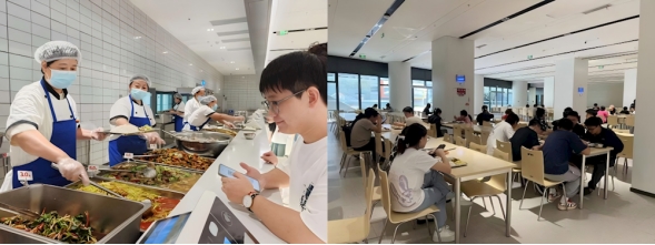 食堂备好了热气腾腾的饭菜,从地方风味到家常小炒,品类丰富、口味多样;食堂阿姨们也格外慷慨,“手不抖、分量足”,笑语盈盈地为每一位同学盛上满满的关怀。