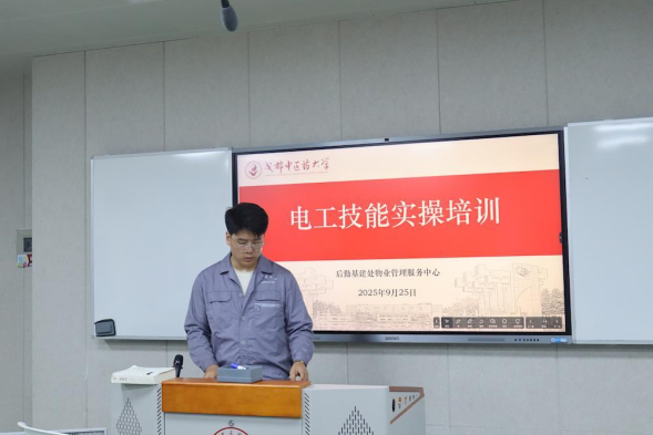 9月25日下午,成都中医药大学后勤基建处在温江校区举办了电工技能实操培训。此次培训邀请电力维保单位的专业工程师董飞进行授课,物业管理服务中心、饮食服务中心、公寓服务中心及中心城区校区后勤服务中心共30余名员工参加。