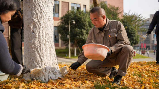 眉山校区将课堂搬到户外,联合拓新、东坡、砺能书院师生及志愿者,共同开展城市职业学院葱兰广场两边草坪的树木刷白以及运动场上方马路落叶清扫劳动。后勤师傅现场讲解树木养护知识与生态循环理念,师生在实践中体会劳动价值,感受自然与人文的和谐共生。这不仅是一次环境美化,更是一堂生动的“生态成长课”,实现劳动与育人、技能与素养的有机结合。