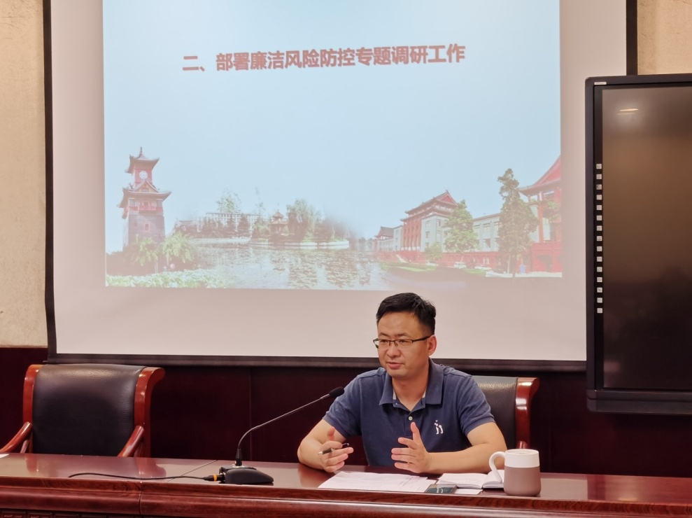 惠新强作了总结讲话,他指出:一是要将廉洁风险防控专项调研与主题教育、党风廉洁教育宣传统筹谋划、一体推进,切实摸清廉洁风险底数,通过建章立制来堵塞漏洞、防控风险;二是纪检监察干部对于单位出现的苗头性、倾向性问题,不仅要采取措施加以解决,而且要引以为戒、举一反三,实现问题标本兼治;三是纪检监察干部在工作中要发挥斗争精神,并注重方式方法,围绕各单位人财物聚集领域环节,重点关注流程规范与制度建设,为各单位高质量发展提供有力保证。