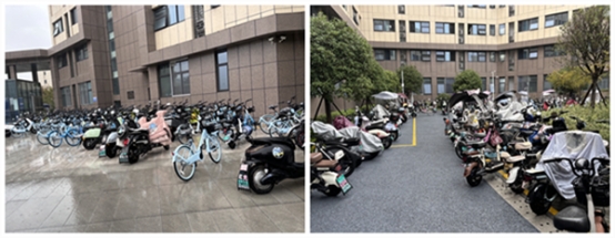 “我的工作从晚上8点开始,一直持续到第二天早上,在这期间我会整理组团内外停放的车辆,确保它们排列整齐。这样不仅能够容纳更多的车辆,同时也不占用紧急通道,以便在发生紧急情况时,大型车辆比如消防车能够迅速进入。”王远成说道,“车位非常紧张,尤其是在新生入学后,组团门口的共享单车数量从一两百辆增加到三四百辆。我需要不断调整和优化停车空间,为此我还拉设了警戒线,确保靠楼的那一侧不停放车辆,这是为了保证突发情况时不影响疏散和救援。” 巡逻自组团大门开始,王远成细致地将组团内停放的自行车和一些较重的电动车摆放整齐,全部过程需要一个多小时。