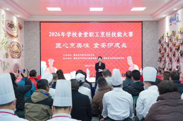 2026年1月11日,攀枝花市学校食堂职工烹饪技能大赛在市经贸旅游学校(江南校区)圆满举行,来自全市25支学校食堂代表队的73名选手同台竞技,展开了一场精彩纷呈的厨艺比拼。